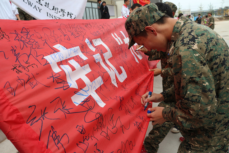 最后,全体师生在牢记“九一八”,勿忘国耻,刻苦学习,报效祖国,振兴中华”的横幅上签字。同学们一致表示,要努力学习,坚定自身理想信念,投身祖国的建设事业中,为“中国梦”的实现奉献青春力量。