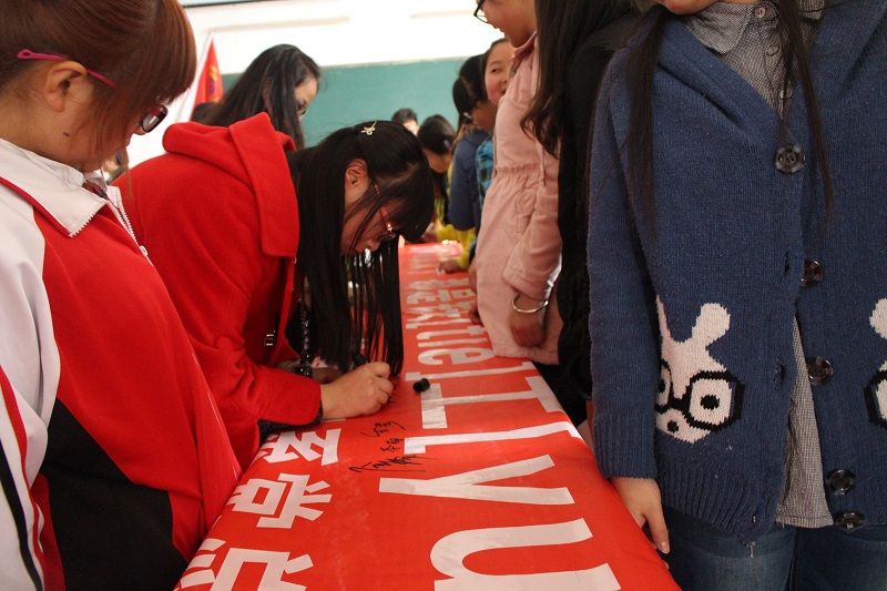 讲座之前,一条“女神和女汉子,都是铁(tie)工(yuan)的好妹子”的横幅在讲台上徐徐拉开,顿时,台下女生掌声雷动,拍手叫好。同时,台下女生不时的喊出“铁院女生少,个个都是宝,女生们要把自己当做宝贝一样爱惜自己”的口号。随后,第二党支部书记冯利斌老师号召全体支部女生,将自己的签名留在横幅上,作为“铁院好妹子”的见证。