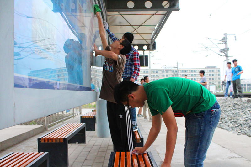 6月3日下午,铁工系13级30名受资助贫困生掀起“感恩回馈 擦亮校园”义务劳动的开端,义务清除高新校区高铁实训工区的杂草,擦洗工区宣传栏,拾捡死角的垃圾,劳动持续了近两个小时,整个工区焕然一新。