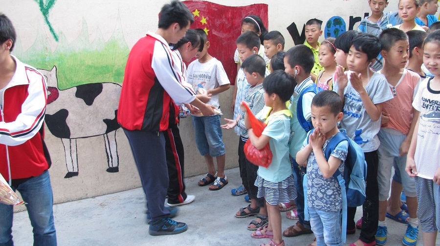 在聋哑学校,志愿者们为聋哑儿童带去了文具、玩具、零食等物品,和孩子们一起下棋、唱歌、做游戏,收到礼物的孩子们用“你好”、“谢谢”、“爱你”等手势及最纯真的微笑回应着志愿者,带给了志愿者们诸多的感动。