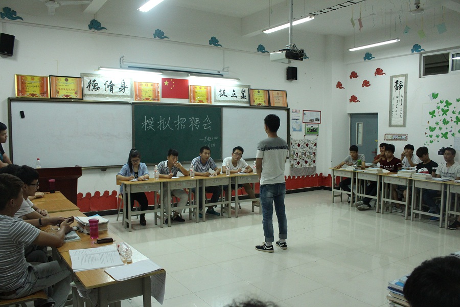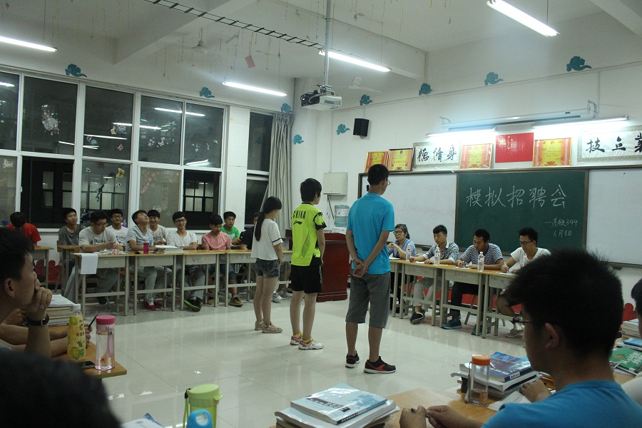 为了培养14级学生的职业适应力,较早掌握面试技巧。6月8日晚自习,铁道工程系14级新生代表在GB236举行了模拟招聘会。
