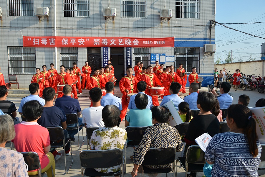 为加大禁毒宣传的深度和广度,营造浓厚的禁毒氛围,使广大人民群积极参与禁毒斗争,逐步提高认识毒品、远离毒品、抵制毒品的能力。 2015625日下午,在“6·26”国际禁毒日来临之际,由渭南市高新分局白杨派出所联合陕铁院铁工系和轨道系举办以“扫毒害,保平安”为主题的禁毒文艺晚会在张东村隆重举行。此次晚会白杨派出所和陕铁院积极筹备,精心组织,以文艺活动的形式开展宣传。轻松、活泼、幽默、诙谐的语言类、歌舞类节目生动形象地诠释了毒品对人身和家庭的危害,渲染了远离毒品健康生活的和谐美好。本次禁毒宣传主题晚会,参与人数多、声势大、效果好,有效的提升了广大人民群众拒毒、防毒的意识。得到现场市民的一致好评。此次晚会也吸引来渭南电视台的记者前来采访报道。