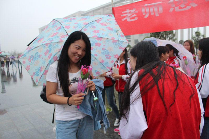 秋菊溢彩,桂花飘香,第31个教师节在硕果累累的金秋中轻盈走来,伴随着感恩的雨滴,9月10日一大早,陕铁院铁道工程系的100余学生就提前来到校门口,列队整齐,等候迎接上课的老师,他们敲响了节日的锣鼓声,为老师们送去了节日的鲜花和贺卡,向辛勤培育自己的老师说声“老师您辛苦了,教师节快乐”,同学们用简单却又充满深情的方式表达了对老师的敬爱和感激之情,用朴素的行动表达对老师最真挚的祝福。