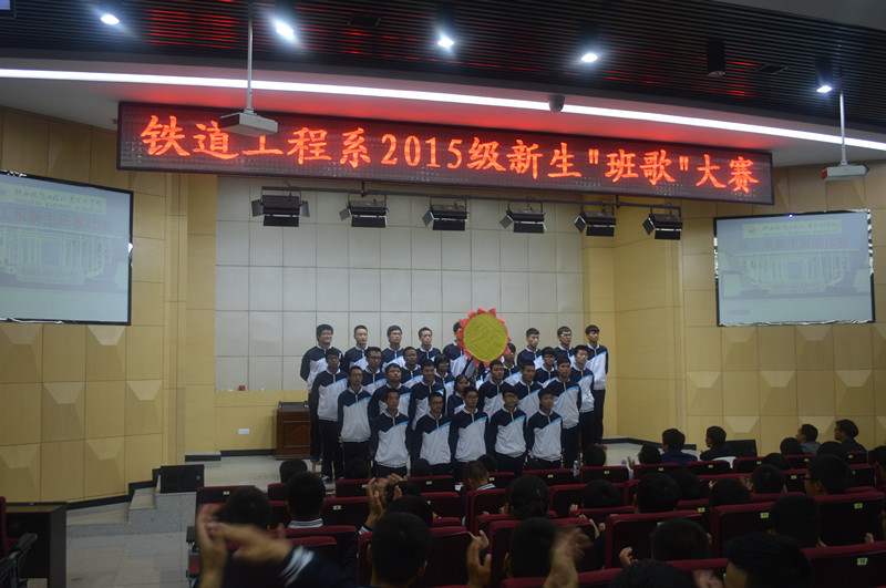 在铁工系团总支精心组织策划下,本次比赛共有15级17个班报名参加,比赛内容丰富,形式多样,现场气氛热烈而有序。大赛在高铁3152班的《最美的太阳》中拉开帷幕。有的班歌以友谊为主题,充分体现出班级大家庭的温暖;有的班歌充满对未来的设想,表达了同学们对大学生活的美好展望;有的班歌以积极的人生态度为主题,展示了同学们乐观上进的精神面貌;有的班级摆出了富有创意的舞台阵型,给人耳目一新的感觉。
