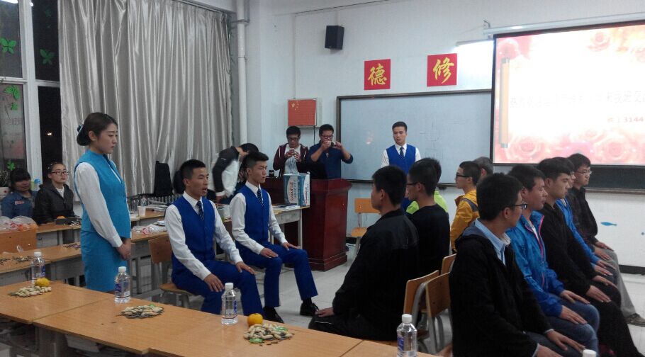 10月21日晚,管理系运营3141班8名同学做客铁工系铁工3144班,通过演示标准站姿、坐姿、蹲姿以及如何打领带等礼仪示范,为该系学生普及礼仪知识。铁工系同学学习热情高涨,积极互动,大家充分体会到礼仪的魅力和在生活中的重要性。本次活动,促进了学生之间的学习交流,架起了两系的友谊桥梁。