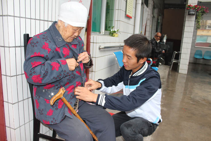 在敬老院,志愿者们为老人送去了收音机、日用品和营养品,他们帮助老人打扫卫生、整理房间,和老人们谈心聊天,给老人按摩、理发、剪指甲,为老人表演文艺节目……温馨的气氛充满四周,老人们的脸上洋溢着幸福、安适的神情,露出发自内心的微笑。志愿者用实际行动践行社会主义核心价值观。