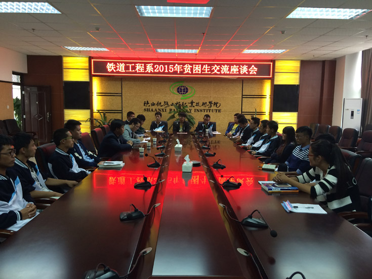 10月23日下午,铁道工程系召开以“正视贫困,立志成才”为主题的贫困生代表座谈会。铁工系党总支书记、辅导员和全系贫困生代表40余人面对面进行交流座谈。