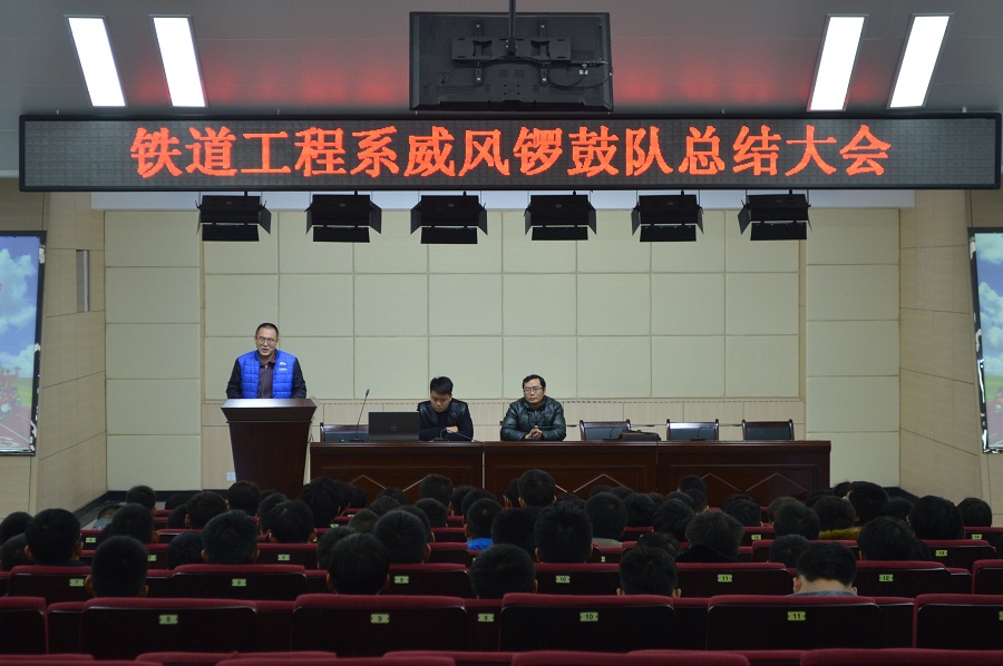 为扩大陕铁院威风锣鼓队在全院影响力,力争打响全院,走向社会,2015年11月22日晚,陕铁院铁道工程系威风锣鼓队在高新校区诚信厅召开一年一度的总结暨纳新大会。铁道工程系学工办主任郎儒林,威风锣鼓队指导教师侯峰,铁道工程系辅导员参加本次大会。