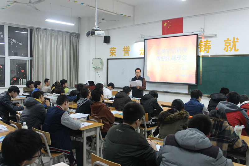 为深入学习贯彻党的十八大和十八届三中、四中、五中全会和习近平总书记系列重要讲话精神,12月1日晚,陕铁院铁工系13级各班级组织开展“弘扬宪法精神,增强法制观念”主题活动,活动中,各班级通过主题班会、法律知识竞赛、集体讨论等方式,学习了宪法和党的十八届五中全会精神,以及中国特色社会主义法律体系,对教育类的基本法律进行了重点学习,各班班主任对“弘扬宪法精神,推动创新、协调、绿色、开放、共享发展”进行了详细解读。