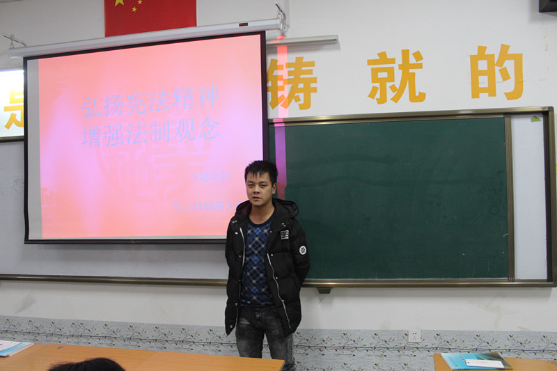 为深入学习贯彻党的十八大和十八届三中、四中、五中全会和习近平总书记系列重要讲话精神,12月1日晚,陕铁院铁工系13级各班级组织开展“弘扬宪法精神,增强法制观念”主题活动,活动中,各班级通过主题班会、法律知识竞赛、集体讨论等方式,学习了宪法和党的十八届五中全会精神,以及中国特色社会主义法律体系,对教育类的基本法律进行了重点学习,各班班主任对“弘扬宪法精神,推动创新、协调、绿色、开放、共享发展”进行了详细解读。