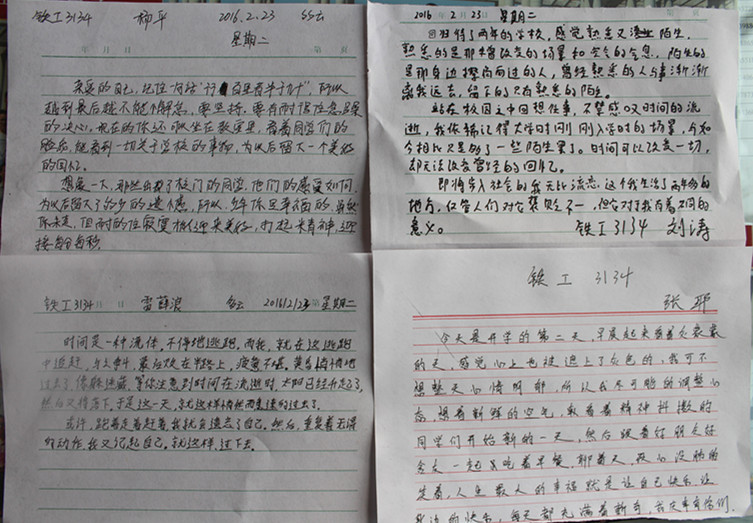 近日,铁工系16届毕业生利用晚自习,积极开展抒写情感日记——“每天一百字”活动,同学们每天将通过日记的形式,认真记下毕业前的每一天,为大学生活留下美好的记忆。同学们从顶岗实习准备、毕业设计、未来规划与设想、感恩母校等方面,抒发同窗情、师生情和人生感悟,此活动既充实了毕业班的自习课,也锻炼了学生的写作能力!