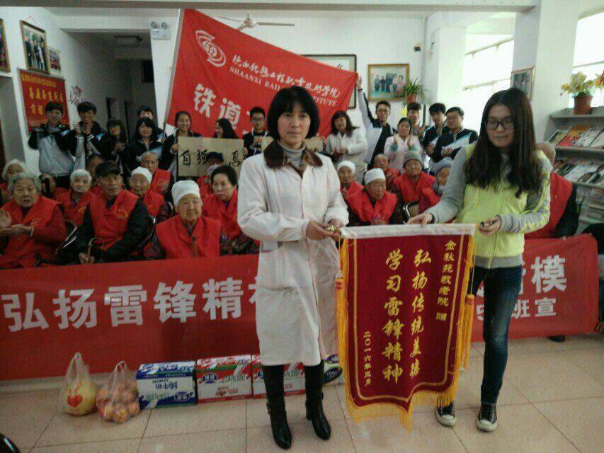 3月6日上午,陕铁院铁工系老师杨梓钰带领铁工5153班同学来到了渭南“金秋苑”敬老院,开展学雷锋活动,获得了敬老院赠送的“弘扬传统美德 学习雷锋精神”锦旗一面。