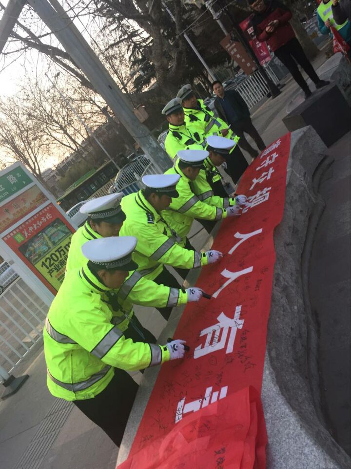 短短的两个小时,学生们收获满满,受益匪浅,贾凡同学不由的发出感慨:“交警同志的工作真不容易,作为新时期大学生,我们应该自觉遵守交通规则,从我做起”。活动中,同学们还拿出准备好的横幅“遵守交规,人人有责,从我做起”与交警一起签名,安全警钟,时刻长鸣。