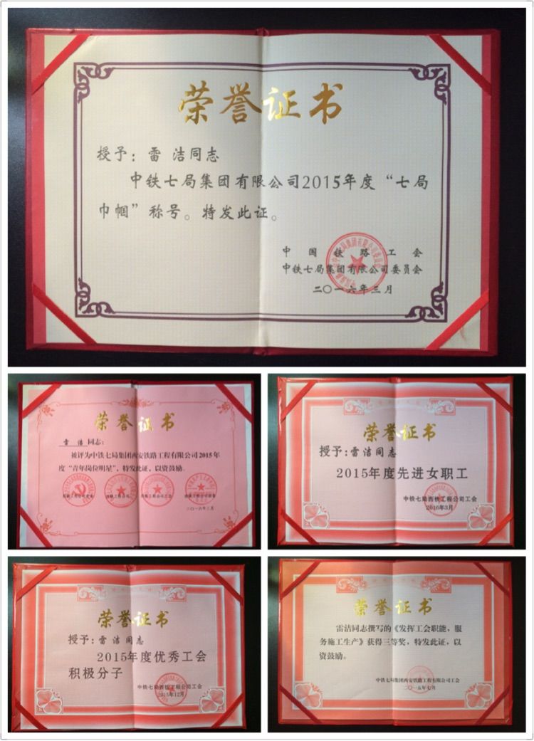 近期,陕铁院铁工系铁道工程技术专业02级毕业生雷洁荣获中铁七局西安铁路工程公司“岗位明星”,中铁七局集团公司“七局巾帼”英雄,中铁股份有限公司“先进女职工”等多项殊荣,获得了企业的高度评价。