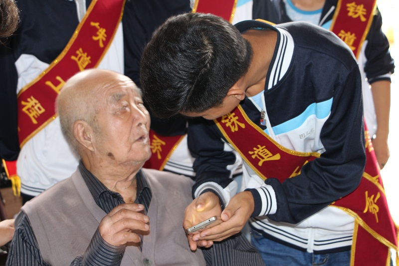 今年长征胜利八十周年近日,铁工系学生党员志愿者前往张东村看望革命老兵。与抗战老兵一起共忆峥嵘岁月,聆听抗战故事,在老人家中,同学们与老人促膝交谈,认真聆听他当年艰苦奋斗的工作经历,详细询问了老人的身体状况,给老人打扫了房间,帮老人锄地,清理了菜园中的杂草。以此来表达全体学生对抗战老兵的祝福和敬意。
