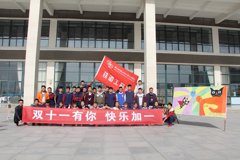2016年11月11日中午,铁道工程系在喷泉广场开展以“双十一有你快乐加一”为主题的联谊活动。