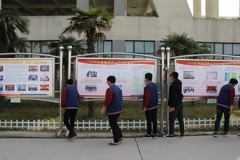 学生擦宣传栏