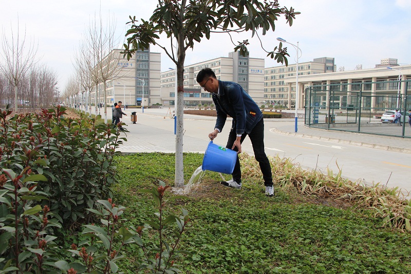 3月2日下午,铁道工程系30余名积极分子在高新校区打扫卫生,清洗了校门石、宣传栏、高铁实训基地、楼梯等处,给树木浇水,美化了校园环境,以实际行动践行雷锋精神。同学们表示:自觉维护校园优美环境是大学生应有的基本素质,应从我做起、从身边做起,以实际行动践行雷锋精神。学生给树浇水学生擦宣传栏