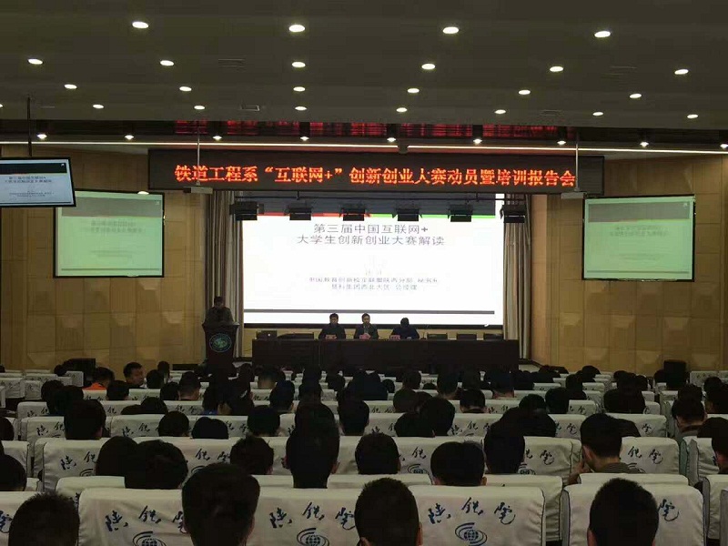 3月22日下午,陕铁院铁道工程系在高新校区博爱厅举行2017年“互联网+”大学生创新创业大赛培训会,会议邀请慧科集团西北大区总经理,中国教育信息化产业创新联盟陕西分部秘书长,中国“互联网+”创新创业大赛陕、甘、青赛区评委沈洋作“第三届中国互联网+大学生创新创业大赛”专题报告。该系主任张碧、党总支书记李军志、全体教职工及学生代表共500余人参加会议。