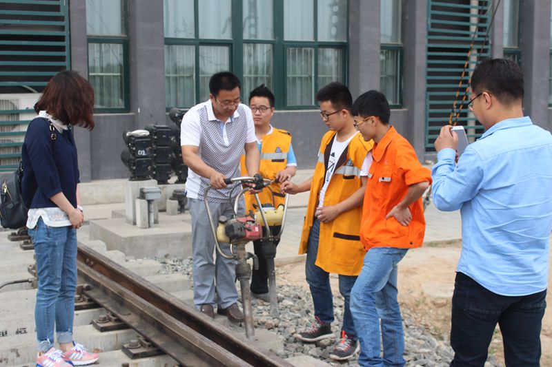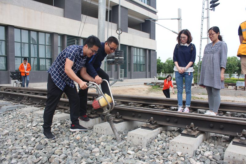 5月11日上午,铁道工程系在高速铁路实训工区举办“共筑职教梦,喜迎十九大--铁路养护装备操作演练”活动。此次活动包含高速铁路实训工区、铁路养护实训室的参观及实训设备操作演练两部分内容,其中涉及钢轨探伤、钢轨打磨、线路起道、拨道、改道、轨缝整正、无砟轨道精测精调等十余个铁路线路养护常用项目的操作演练。 活动吸引了百余名师生的观摩体验,通过实训老师的演示,非铁道工程专业教师及学生的亲自动手操作,亲身体验,提高了铁道工程技术专业影响力,加大了培养铁道养护工作技能人才的宣传,加强了教师与教师之间、教师与学生之间的专业交流互动,激发了学生学习的热情兴趣,深化了培养高质量技能人才的目标,同时也使铁路养护装备资源得到优化整合,活动取得了圆满的成功。(姚殿梅) 周永胜老师演示捣固机操作学生体验钢轨打磨机操作教师与教师探讨