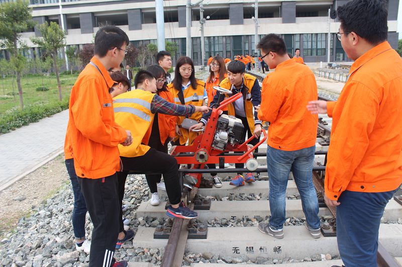 5月11日上午,铁道工程系在高速铁路实训工区举办“共筑职教梦,喜迎十九大--铁路养护装备操作演练”活动。此次活动包含高速铁路实训工区、铁路养护实训室的参观及实训设备操作演练两部分内容,其中涉及钢轨探伤、钢轨打磨、线路起道、拨道、改道、轨缝整正、无砟轨道精测精调等十余个铁路线路养护常用项目的操作演练。 活动吸引了百余名师生的观摩体验,通过实训老师的演示,非铁道工程专业教师及学生的亲自动手操作,亲身体验,提高了铁道工程技术专业影响力,加大了培养铁道养护工作技能人才的宣传,加强了教师与教师之间、教师与学生之间的专业交流互动,激发了学生学习的热情兴趣,深化了培养高质量技能人才的目标,同时也使铁路养护装备资源得到优化整合,活动取得了圆满的成功。(姚殿梅) 周永胜老师演示捣固机操作学生体验钢轨打磨机操作教师与教师探讨