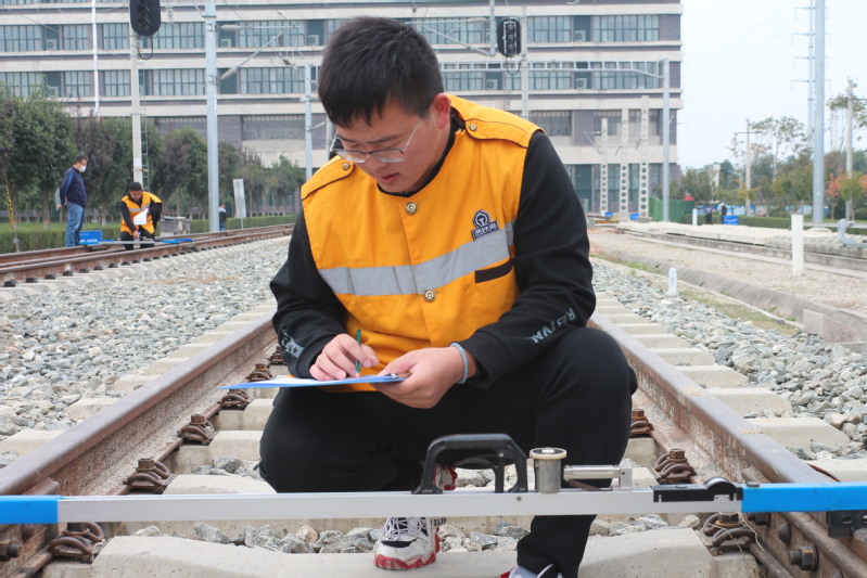赛事共292人参加,采用个人实操竞赛方式进行,参赛选手利用轨距尺在学院高铁实训工区进行铁路线路检查,将检查结果记录在记录簿上并在在记录簿上勾画超限处所,在记录簿上简单写出整治超限的方法。比赛主要考查学生对铁路线路状态检查以及常见铁路病害分析、铁路养护维修作业的掌握情况,组委会提供给每位选手一份线路检查记录簿和一把道尺,参赛选手需自带黑色中性笔,在记录簿上进行记录和作答,由评委全程监控,根据现场检查和作答的情况给出成绩,考试结束后根据每位选手的成绩进行排名。
