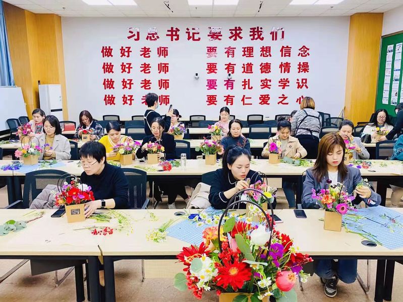 此次活动,老师们在“花香”间锻炼了技能,放松了心情,也增进了彼此之间的感情,同时度过了一个愉悦、有意义的节日。(文/杨志鹏 图/王海燕)