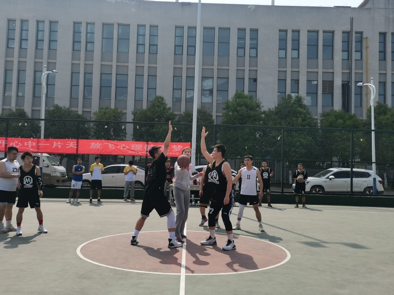 比赛进程中,各位队员都全力以赴,积极防守、积极进攻,越战越勇,显示了他们极佳的心理素质。在场同学也情绪高涨、摇旗呐喊,不时为队员打气、喝彩,气氛热烈。赛场上的双方拼抢激烈,带球、运球、投篮等一系列动作潇洒、规范,引来围观同学一阵阵地喝彩,每个队员都积极跑位,为队友作掩护,还时不时有精妙的传球、漂亮的配合和精彩地上篮。比赛中也有意外跌倒的发生,可是每个人并没有因此影响了比赛情绪,队员之间拍拍肩膀相互安慰一下接着再来。一场场紧张激烈、扣人心弦的角逐,不断的在篮球内上演。