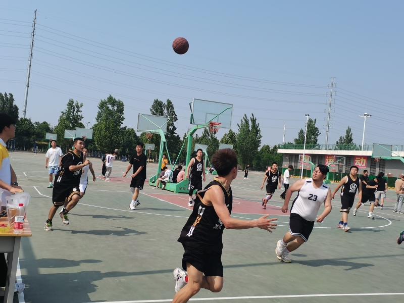 比赛进程中,各位队员都全力以赴,积极防守、积极进攻,越战越勇,显示了他们极佳的心理素质。在场同学也情绪高涨、摇旗呐喊,不时为队员打气、喝彩,气氛热烈。赛场上的双方拼抢激烈,带球、运球、投篮等一系列动作潇洒、规范,引来围观同学一阵阵地喝彩,每个队员都积极跑位,为队友作掩护,还时不时有精妙的传球、漂亮的配合和精彩地上篮。比赛中也有意外跌倒的发生,可是每个人并没有因此影响了比赛情绪,队员之间拍拍肩膀相互安慰一下接着再来。一场场紧张激烈、扣人心弦的角逐,不断的在篮球内上演。