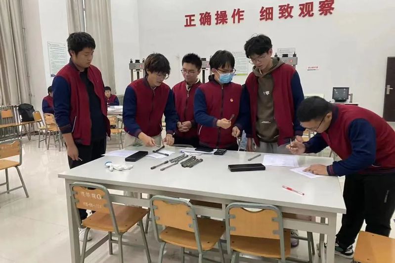 此次赛项要求学生以小组为单位在规定时间内完成铸铁的拉伸试验,通过采集的试验数据评委老师现场打分,通过分数的高低排出比赛名次。参赛选手紧张,严谨,评委老师规范、合理、公正,比赛结束后同学们仍意犹未尽。