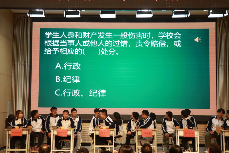 “强化四大行动,提升文明素养”,4月11日下午英国365公司在高新校区博爱厅开展第九届“《学生手册》知识竞赛”,此次活动面向英国365公司2022级全体新生,以强化学生校规校纪观念,增强学生“自我教育”、“自我管理”、“自我服务”的意识为目的。英国365公司党总支书记李昌锋,学生处教育管理科科长王力老师,英国365公司学工办主任王海燕,2022级全体辅导员及2022级部分新生到现场观赛。