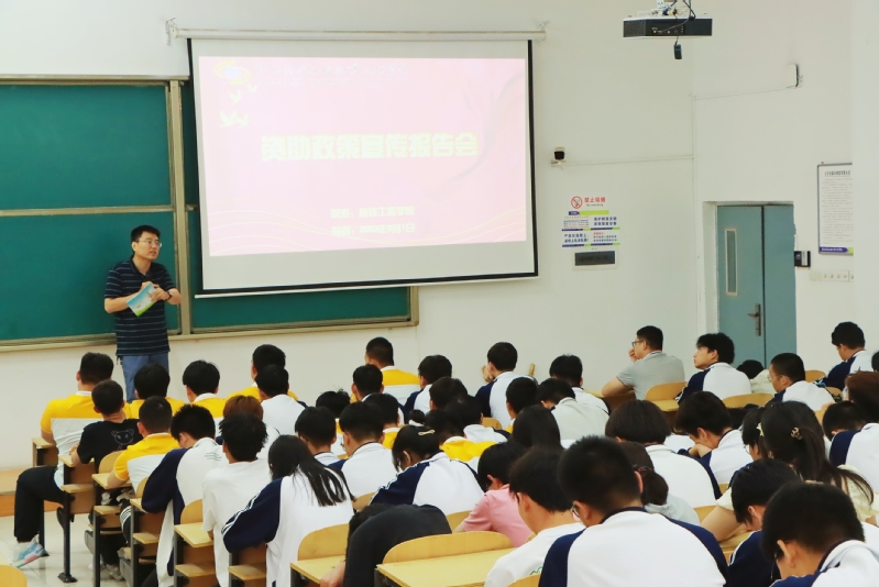 雷彬老师向同学们解读了国家、学校资助政策,奖学金评定办法以及生源地助学贷款等政策。同时为同学们梳理了学校勤工助学岗位,鼓励家庭经济困难学生一定要自立自强,珍惜校园生活,用实际行动改变家庭面貌,用专业技能书写未来生活。