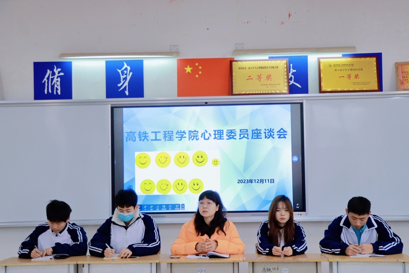 首先辅导员黄显鸽给同学们讲清楚本次心理委员座谈会召开的目的和意义。第二个阶段是各班同学结合班级情况心理活动做的比较好的地方,以及存在的具体问题。大二同学目前集中的问题就是就业,不知道如何选择职业方向。大一同学主要是对未来方向的迷茫,临近期末考试如何应对的问题,性格内向的同学以及人际交往情感问题等。第三个阶段黄老师针对同学们提出的问题给予相应的解决措施。同时要求各班心理委员要有一双慧眼善于发现同学们的情绪变化,及时给予关注,不断创新工作方法。引导学生能够心平气和处理问题,心境开阔,专注当下。各班心理委员还需加强自身学习,更好服务班级学生成长。