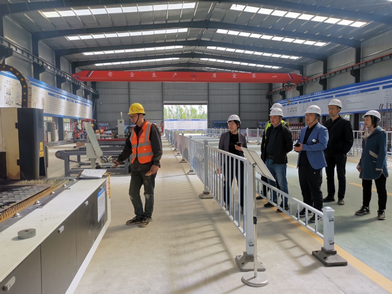铁道教研室老师在项目负责人的陪同下对延榆1标姚店1#隧道进口、3#拌合站、1#钢构场、钢筋厂、柳树店2#隧道进口等工点进行了现场调研,对数控钢筋笼滚焊机、数控锯切套丝打磨生产线、型钢自动上料系统、机器人抓取连接板、定位安装等新技术和新工艺进行了现场观摩。项目负责人就施工策划、施工组织、各工序施工过程控制、现场施工工艺流程、施工环节质量管控及安全质量控制重点等内容向老师们进行详细讲解。