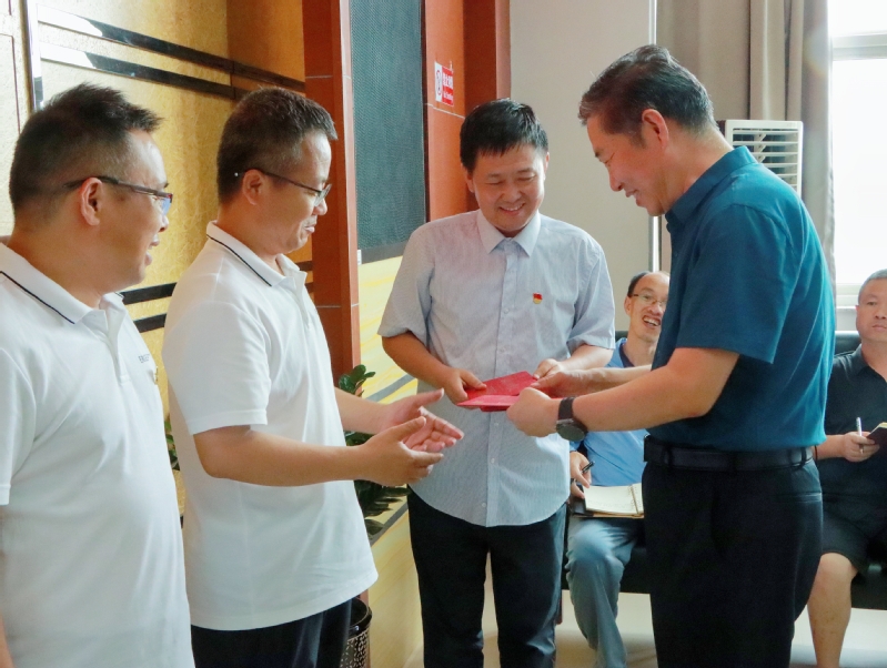 高铁党总支举行庆祝党员政治生日仪式,焦胜军为党员代表送上政治生日贺卡。